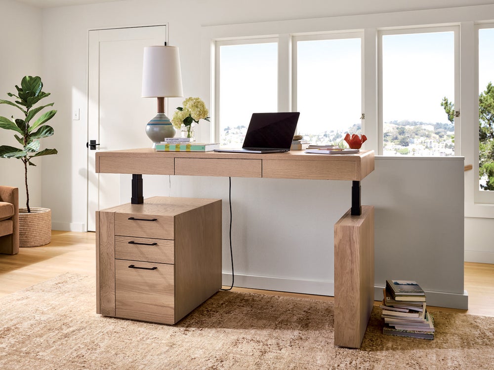 Most standing desks look like simple platforms on stilts. The Room & Board Lincoln [from $4,500; roomandboard.com], created in partnership with Gensler, is a significant upgrade — a traditional-looking desk, complete with side drawers, with a pair of arms that raise the top to 49 inches off the floor. It comes with a solid wood top, is available in five varieties and seven colors, and has a built-in wire management area — ensuring that you can stand or sit without sacrifice.